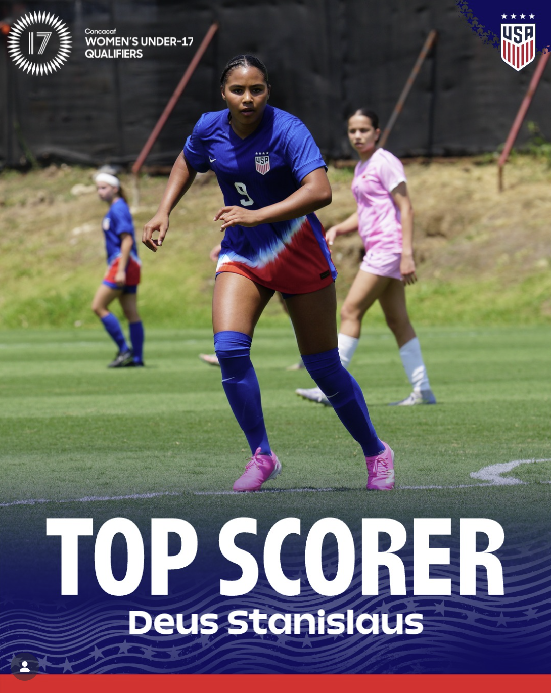 Since we began working on her game in the box, Deus has scored 10 official goals for the US Youth National Team in 8 games.